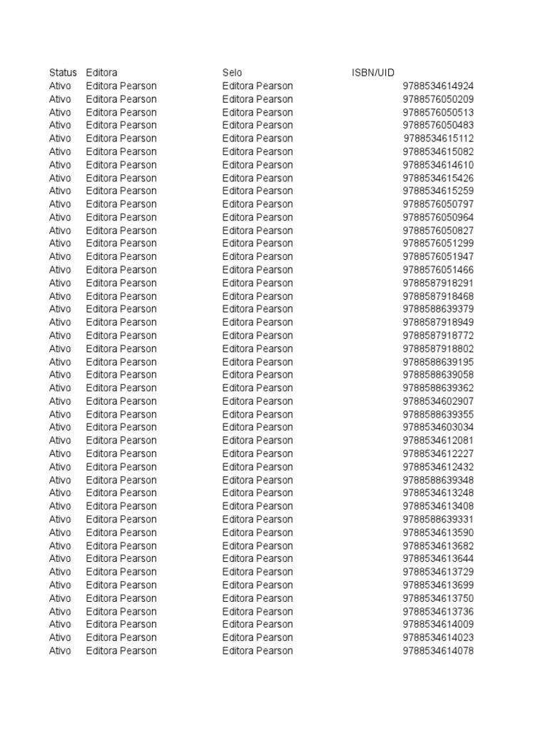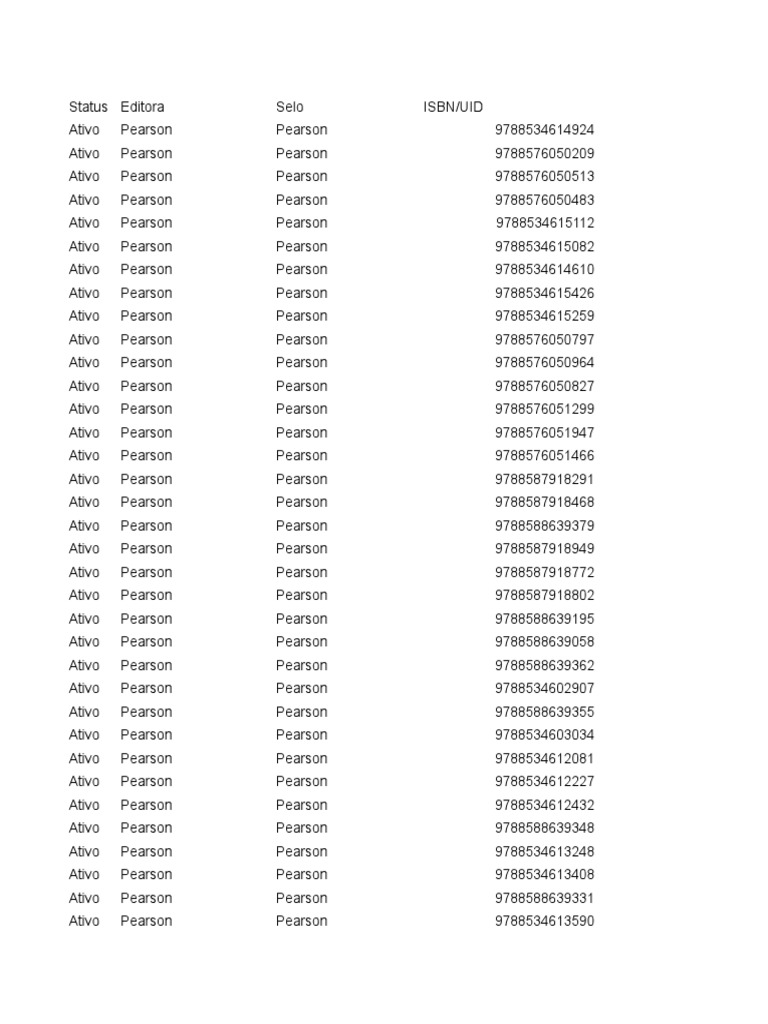 Biblioteca Virtual Perason Lista Xlsx