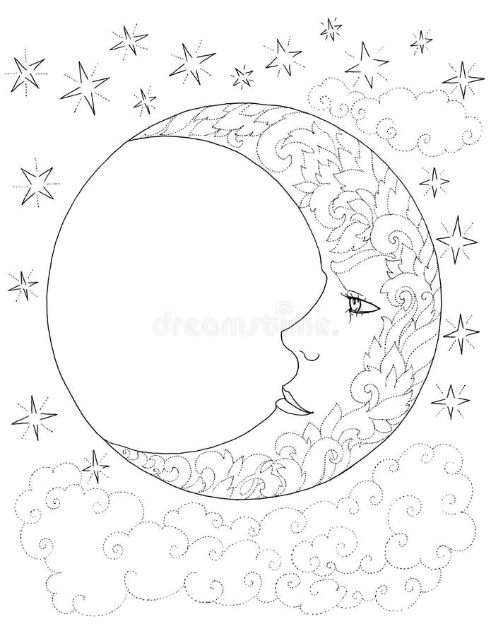 Lua Crescente Ceu Nuvens Estrelas Testes Padroes De Flor Tatuagem Ilustracao Stock Ilustracao De Decorativo Estrela 96598022